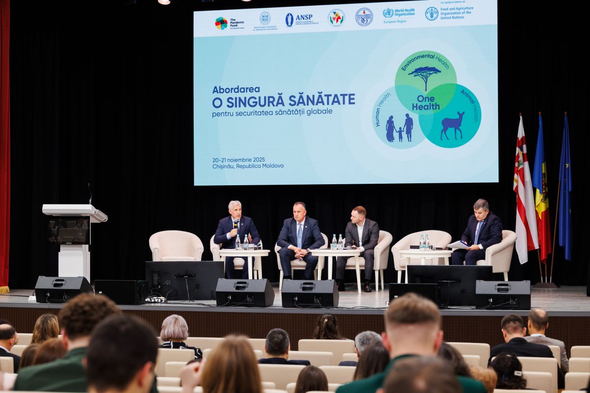 To enhance the quality of One Health policies, specialists in the field gathered at the National Conference with international participation under the title "One Health Approach for Global Health Security", the 3rd edition, which took place on November 20 and 21, 2025 in Chisinau. The event was organized by the Biosafety and Biosecurity Association of the Republic of Moldova in collaboration with the National Agency for Public Health (ANSP), Nicolae Testemitanu State University of Medicine and Pharmacy, the WHO Office in the Republic of Moldova, with the technical support of the Food and Agriculture Organization and the financial support of the Pandemic Fund project.